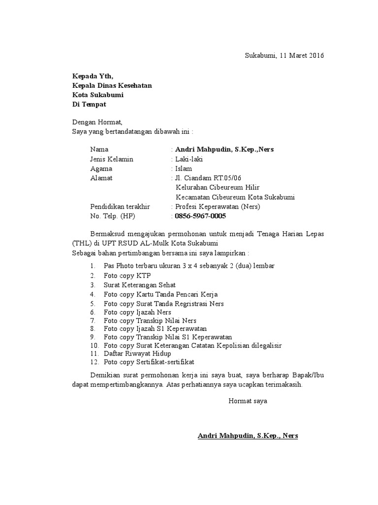 Saat ini menjadi tenaga honorer masih banyak diminati banyak orang walaupun sebenarnya tenaga honorer ini tidak dapat langsung menjadi cpns karena untuk menjadi cpns harus melalui serangkaian tes terlebih dahulu. Contoh surat lamaran kerja yang baik dan benar. Maka, tentu bekerja menjadi hal yang wajib bagi anda. Contoh surat lamaran kerja honorer dinas perhubungan sebagai akunting. Sebelum ke pembahasan utama mengenai contoh surat lamaran kerja, sebaiknya kita ketahui terlebih dahulu format, cara, dan tips dalam penulisan 5.